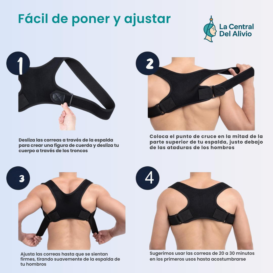 Ayuda a disminuir molestias causadas por mala postura, ya que evita que los hombros se caigan hacia adelante y reduce la tensión en la espalda.